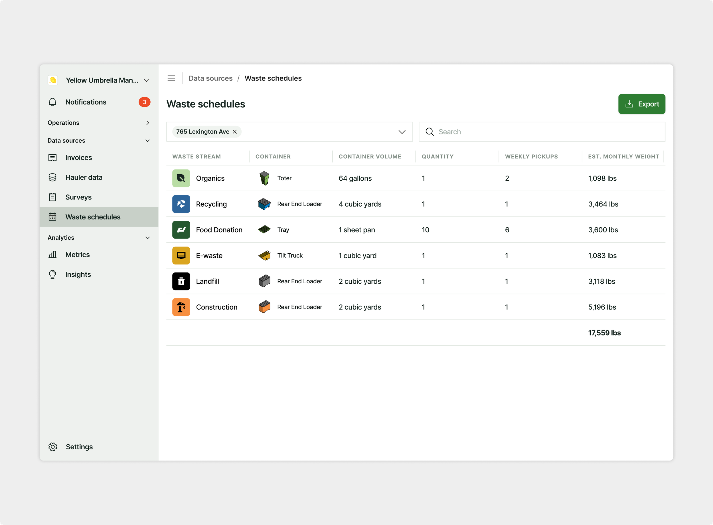 WATS calculates waste volume from each site’s containers and service schedules and then automatically converts that volume to weight.