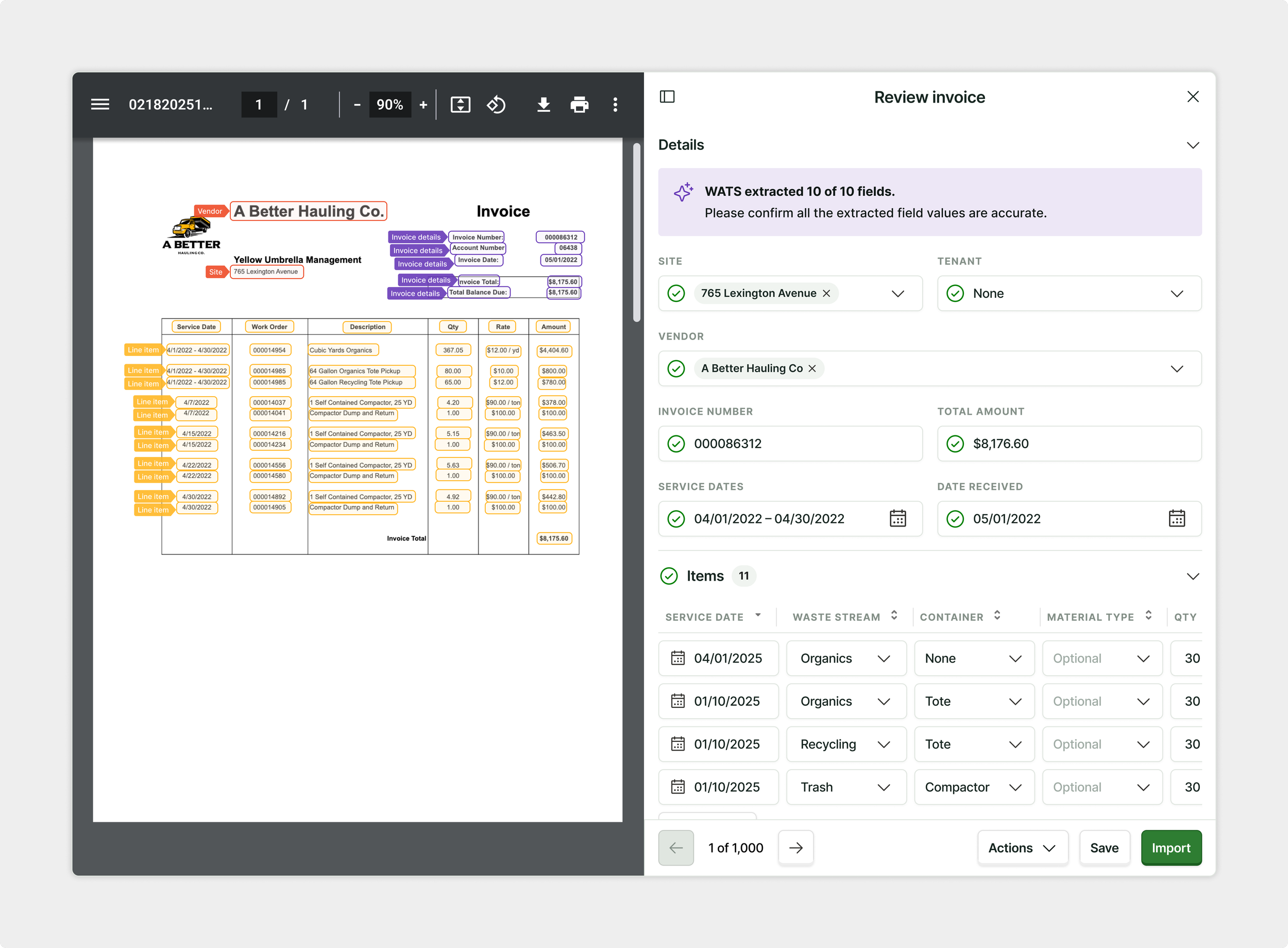 Email or upload your data files directly and we’ll automatically review, extract and import your waste data using a combination of humans, OCR and machine learning technologies.